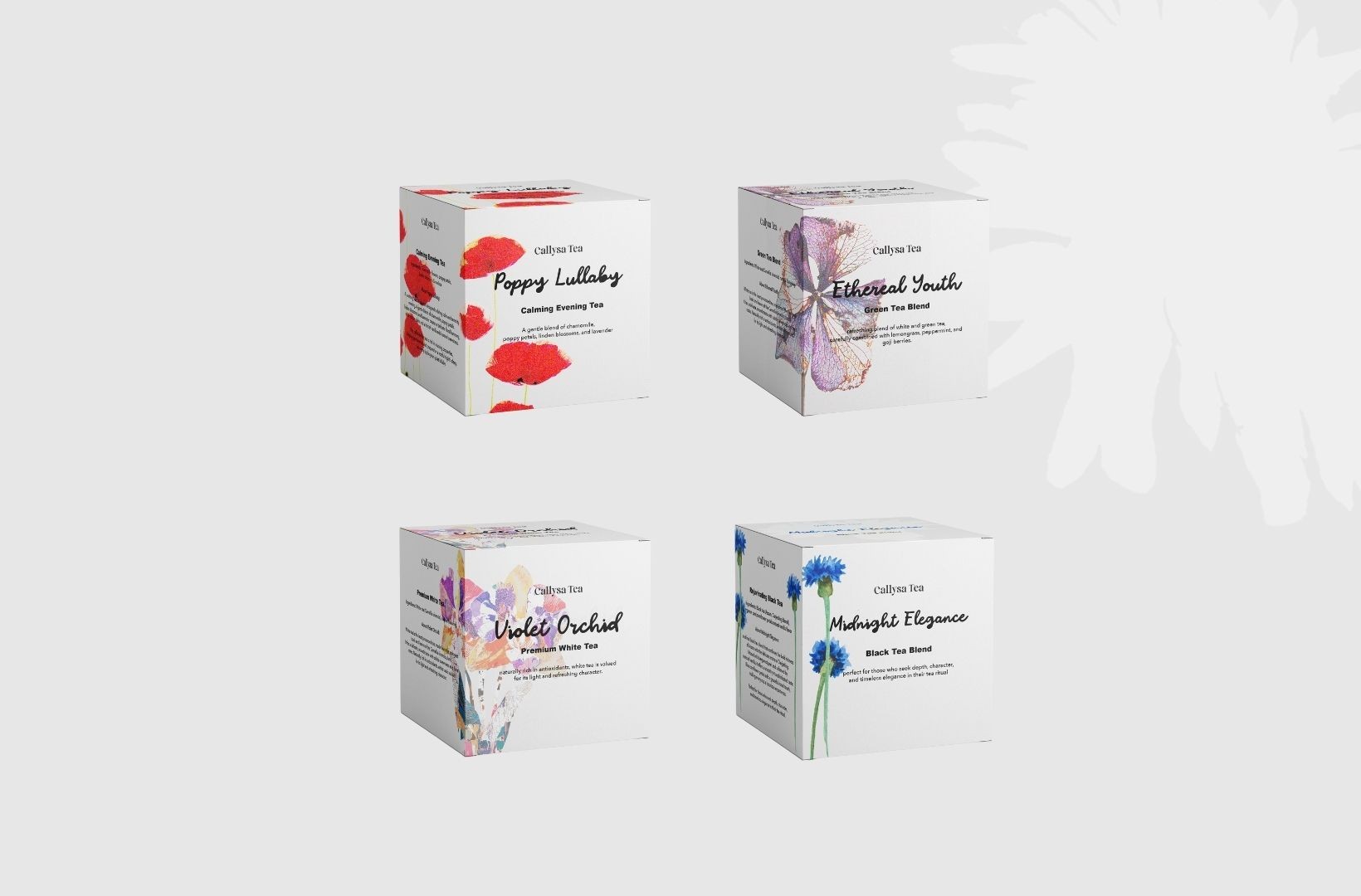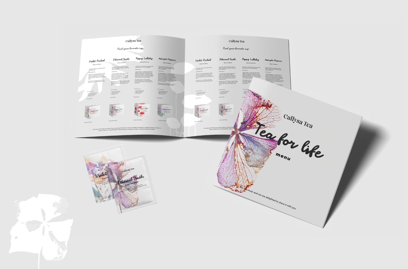 The full brand vision was developed for this project – from the name and logo to packaging design, tea variety names, and their descriptions. The main idea was to reflect naturalness, subtlety, and aesthetic harmony, giving each tea its own unique visual motif and story.